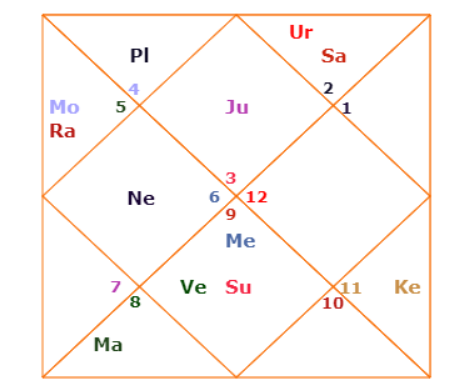 The above horoscope has Sagittarius sign in the ascendant and the lord of the ascendant, Jupiter is placed in the 6th house of competition. This shows that he will get things in his life after a lot of struggle. But is he really struggling? No, his career sped really fast after 2011 statistically. That’s because if we take a closer look at his horoscope his Rahu is placed in the Aquarius zodiac sign in the 3rd house in Shatabhisha nakshatra.