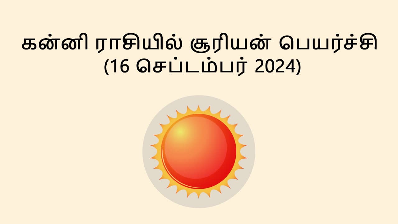 சூரியன் 16 டிசம்பர் 2024 அன்று 19:29 மணிக்கு கன்னி ராசிக்கு மாறப் போகிறார்.