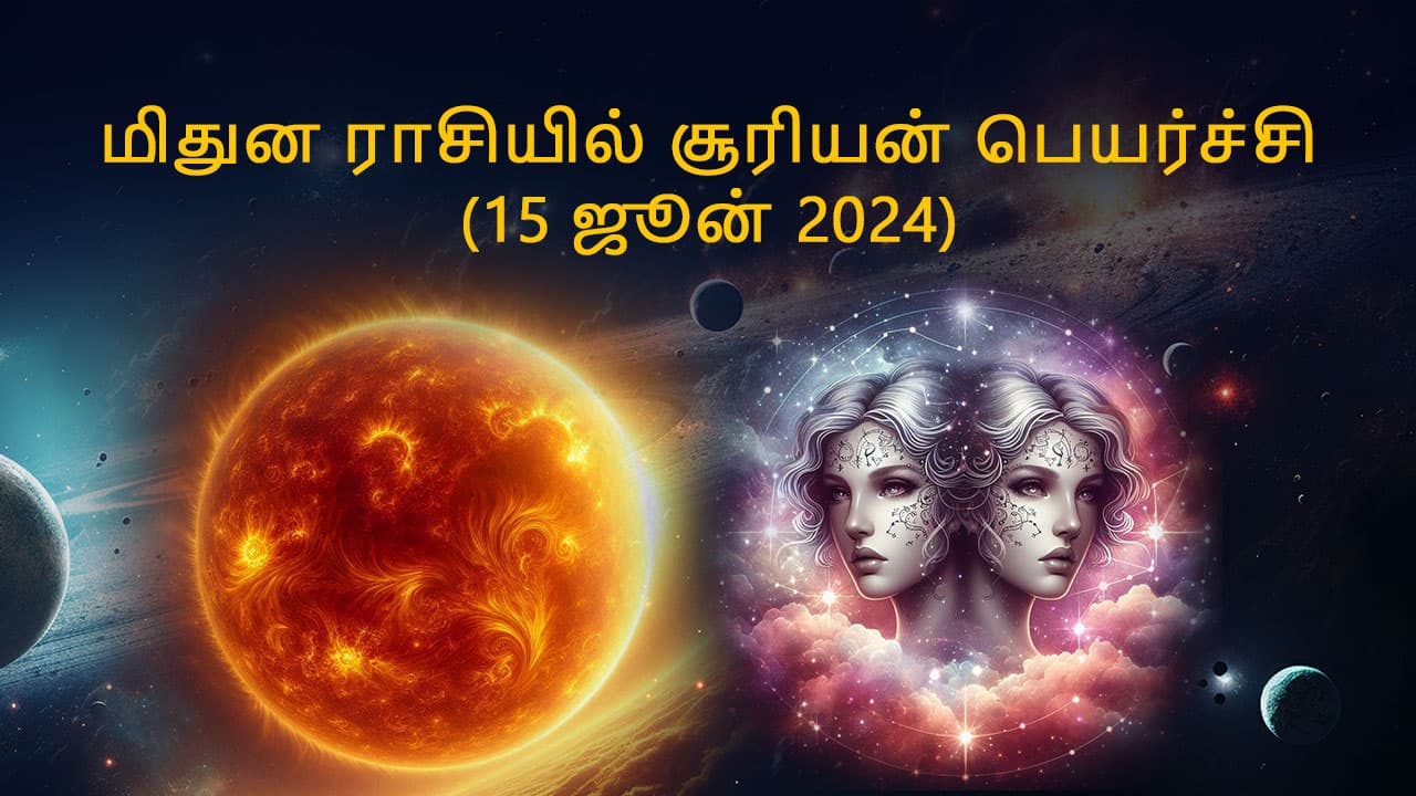 வேத ஜோதிடத்தில் சூரியனுக்கு கிரகங்களின் ராஜா என்ற பட்டம் வழங்கப்பட்டுள்ளது. மிதுன ராசியில் சூரியன் பெயர்ச்சி ராசியின் மூன்றாவது ராசியான மிதுனத்தில் மாறப்போகிறது. ஜூன் 15, 2024 அன்று 00:16 மணிக்கு சூரியன் மிதுன ராசிக்கு மாறுகிறார். சூரியன் ஆற்றல் முக்கிய ஆதாரமாகக் கருதப்படுகிறது மற்றும் மற்ற எட்டு கிரகங்களில் மிக முக்கியமானது. சூரியன் இயற்கையால் ஆண்பால் கிரகமாகக் கருதப்படுகிறது மற்றும் சிக்கலான பணிகளைக் கையாள மனிதனுக்கு உறுதியை வழங்குகிறது. இது தவிர, சூரியன் நபரின் தலைமைப் பண்புகளையும் பிரதிநிதித்துவப்படுத்துகிறார். மேஷம் அல்லது சிம்மத்தில் சூரியன் வலுவாக இருக்கும் ஜாதகத்தில் அதிக நிதி ஆதாயம், தொழிலில் வெற்றி, உறவுகளில் மகிழ்ச்சி, தந்தையின் ஆதரவு போன்றவை கிடைக்கும்.