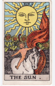 It is also the card of truth so if you have been the victim of lies or deception, The Sun also indicates flashing light on the deceit to reveal the truth and the perpetrators of the lies. The Sun Tarot card in an upright position also signifies good luck. Any problems you have been experiencing will melt away with the warmth this card brings. It can also indicate travel to a country with a warm climate.